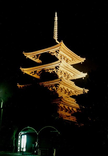 From the year 794 on, at the Emperor's order, the main objective of this facility was to protect the city. Standing 57 m high, with 5 storeys, it is currently the tallest pagoda in Japan.