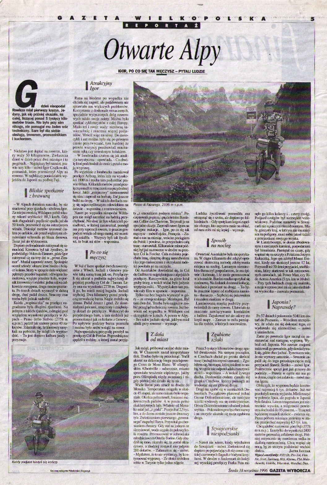 In the article "The Alps wide open" Jacek Łuczak describes Igor's expedition around the Alps.