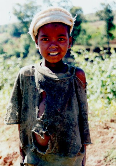 Malagasy families are very large, the ideal model being 12 children: 6 boys and 6 girls, at least in the northeastern region. I have heard about a family in which the first daughter was actually the twentieth child! Groups of children can be seen everywhere. There is a school in almost every big village, crowds of laughing kids heading towards it each morning. Most village schools have only one big classroom, and only parents of children living in wealthy villages and towns can afford to buy them notebooks and pencils.
