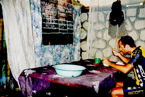 In large villages and towns there are "hotels", i.e. bars serving hot meals, for example rice with meat.