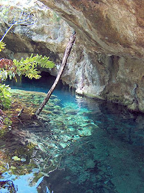 Mexico. One of the most beautiful places in Yucatan. Grand Cenote near Tulum. Cenote is a cave flooded by unbelievably clear fresh water. An excellent place for swimming and diving.