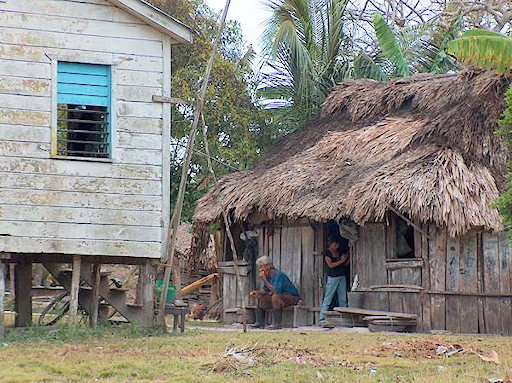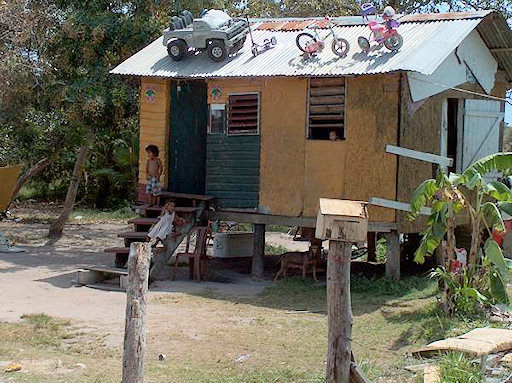 Belize. There are places in Belize where time runs very slowly. Even though the cottage is collapsing, a TV set is a must!