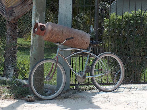 Belize. Creative bicycle use that helps gas suppliers find the right place easily.