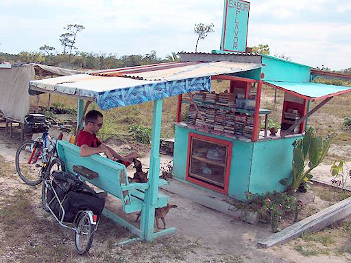 Belize. An interesting place we saw on our way. No towns or villages within dozens of kilometers, but suddenly there is a curiosity: a bookstall.