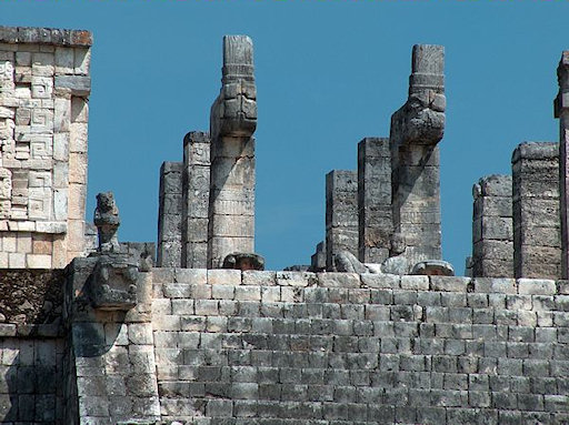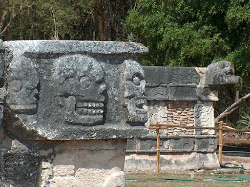 Mexico. Reliefs at the Platform of Skulls in Chichen Itza. This is where the Mayas placed human skulls sacrificed to gods.