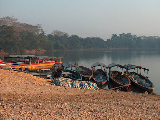 Guatemala. Sayaxche. Such boats frequently serve as the only means of transport providing access to villages in the region of Rio de la Pasion.