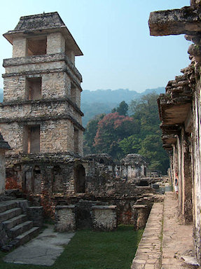 Mexico. Palenque. One of the most beautiful Mayan ruins in entire Mexico. In the picture - a tower in El Palacio complex.