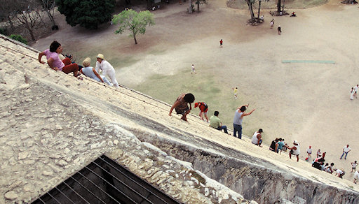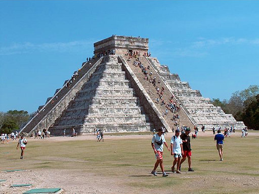 Mexico. Chichen Itza. The stairs leading to the top of El Castillo are very steep.