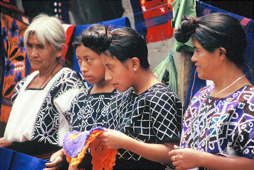 Mexico. Indigenous women selling handicraft goods. It was truly excellent handiwork, and reasonably priced too.