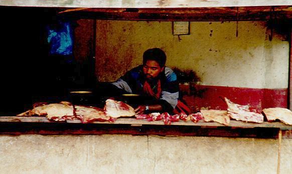 Anyway, sooner or later you can get used to anything. I know that when the meat turns green, when it is completely covered with swarming flies, then the Malagasy add hot spices to make sausages, and when even those turn black, they will be sold roasted. I never stopped wondering how on earth they could eat it! Probably they have developed immunity. A few metres away, people traded in charcoal. The coal dealers were literally black from head to toes. Still farther, a woman sitting on the sidewalk was breast-feeding her baby wrapped in a piece of fabric. There was litter scattered everywhere, and nobody cleaned it – well, maybe once a month. There were no dustbins – people simply dropped leftovers on the street. A few metres further on, yet another scene: a child playing on a heap of rubbish near a cardboard shack.