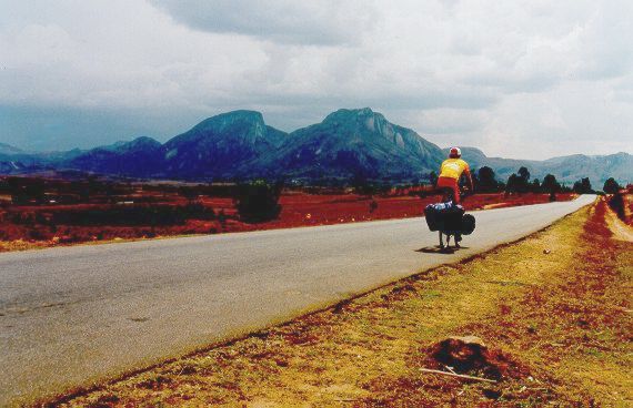 The morning brought yet another strenuous climb to reach yet another pass. The sights were marvellous. When I got to the top of the slope, I was expecting a decent downhill ride, but I got disappointed. The land was flat, and instead of asphalt there was powdery red laterite soil. The road led through the desert stretching to the horizon. The only variation in this landscape were termite mounds and dry tufts of grass. The temperature rose to 50 degrees Celsius. How did I know? My CatEye cycle computer featured a built-in thermometer. As usual, I could not count on any shade in the desert. Moreover, my journey was hampered by poor road surface, damaged by vehicle traffic. I tried to swerve and spare the bike, but usually it ended with getting stuck in loose sand. Some Malagasy drivers told me later that such roads can be either crossed very fast or very slowly. Well, I had no choice.