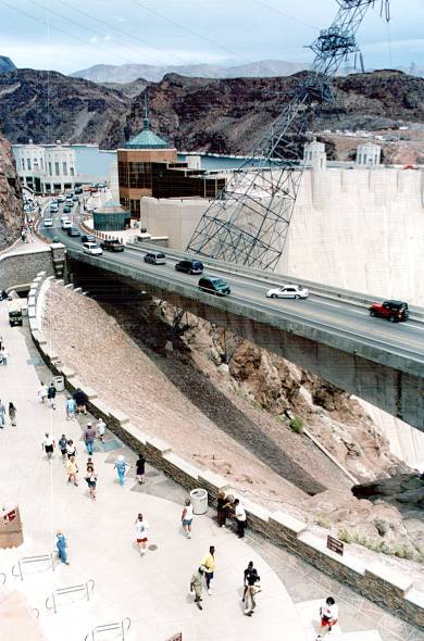 In the morning, the second bike finally arrived, so we packed our belongings in a rented car and set off. We got as far as the Hoover Dam – one of the world's largest structures of this kind (232 m high).