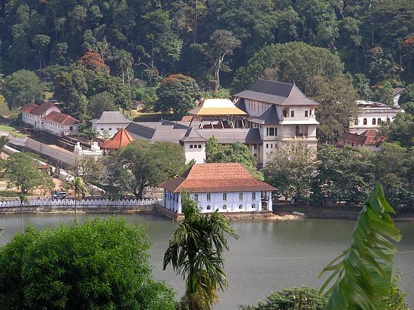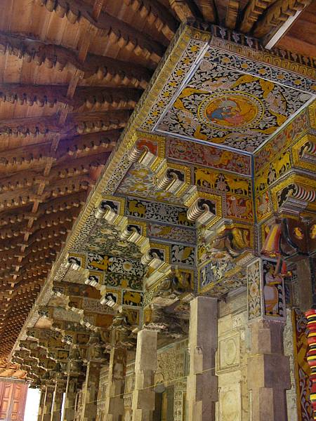 Having left the souvenirs in our hotel, we take a tuk-tuk to the Temple of the Tooth. No shoes are allowed in that area. It is not easy walking on such hot surfaces. We can see locals cool their feet in "pools" with running water. The temple itself can be reached by a park alley. Before entering, we pass a thorough security check, introduced after the 1998 bomb blast caused by the Tamil Tigers right in front of the gate. The gate is now reconstructed, while the remains of precious reliefs are displayed in a museum. The interior of the Temple is richly ornamented with paintings, carvings and gold-plated decorations. After an hour's tour we decide to come back to the Temple in the evening, to attend the puja service.