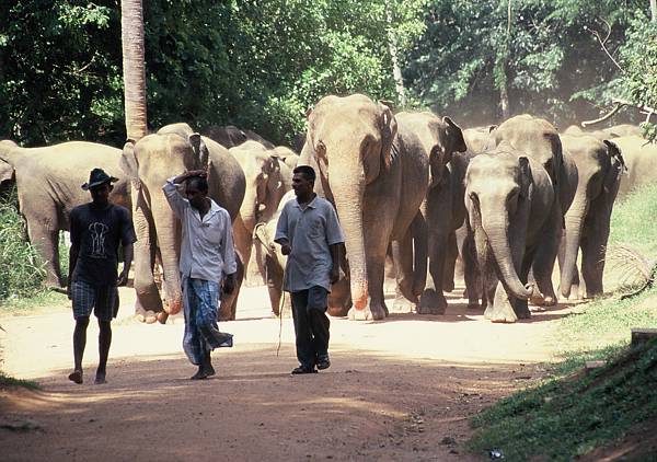 Afterwards, standing at the terrace of a nearby restaurant, we are watching the ritual of elephant bathing. At least no tourist has a chance to get in front of my lens, spoiling the photo. Admission to the elephant orphanage cost LKR 500 per person, and covered elephant bathing show.