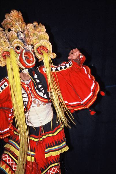 The taxi driver leaves us in front of a building where the dance show takes place. Inside it, there are mostly tourists. We are handed a programme of events. It is difficult to record movies or take photos, as the stage is rather dimly lit, while the dancing men and women move very fast. Drum rhythms gradually put us into a trance. Singing, acrobatic leaps, impressively rich outfits, and finally fire-eaters, who walk on hot coals to boost the overall effect. All that costs us just LKR 300.
