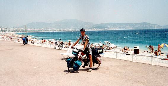 I arrived in Nice, following a well signposted route. I did not decide on sightseeing, however, because the traffic was heavy and inhaling exhaust gas was not to my liking. Instead I went to a beach to admire the turquoise of the Ligurian Sea.