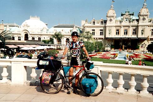Following a seaside promenade I cycled to Monaco, but the road was easy at all. There were some climbs, and the temperature in the direct sun was reaching 50°C! Besides, it was difficult to breathe because of high humidity. I drank a few litres of "Isostar" to quench the raging thirst. Finally I arrived in Monaco – the turning point of my expedition. It was a beautiful city, with incredible tunnels and a harbour full of luxurious yachts.