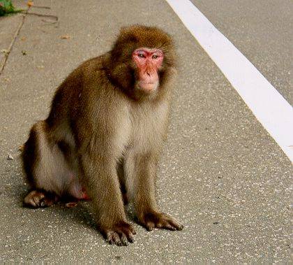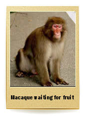 The road to Nikko was steep, with a particularly tough climb to Lake Chuzenji, but a funny meeting with monkeys (the Japanese Macaque) made it more interesting. A few monkeys sat on the roadside, waiting for someone to offer them fruit. We pulled over to film them, and they came to us immediately. Sławek searched through our food supplies, wondering what to give to the monkeys. In the meantime one of them – obviously impatient – tried to snatch a bag out of Sławek's hands. Despite his awe, Sławek remained cool and did not let go the bag. In response, the angry monkey bared its impressive teeth at us.