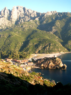 Corsica. Porto in the rays of the setting sun.