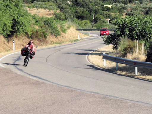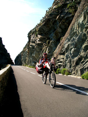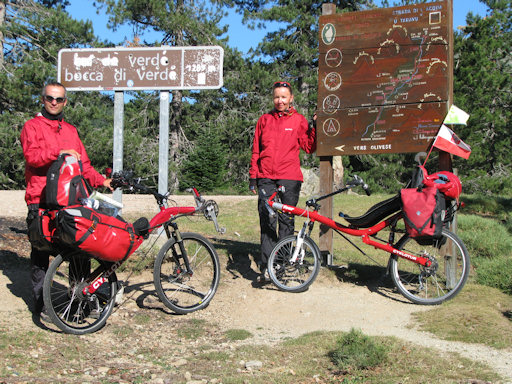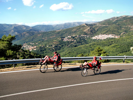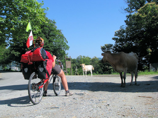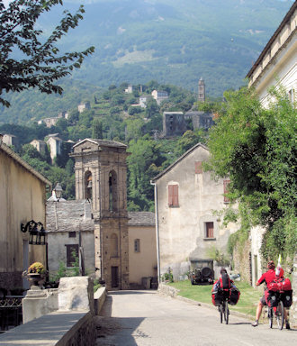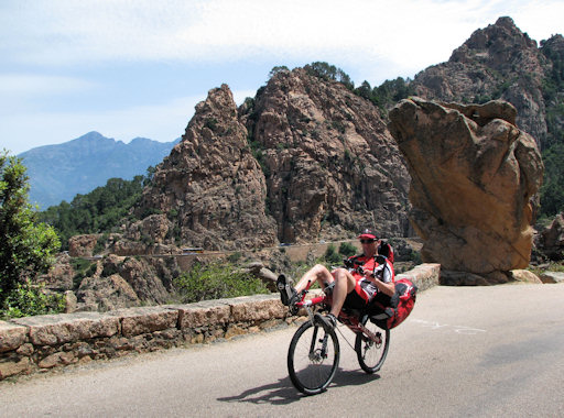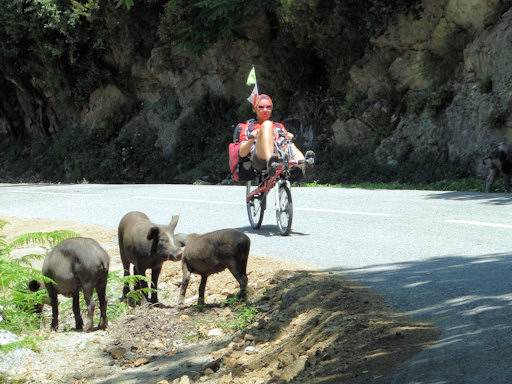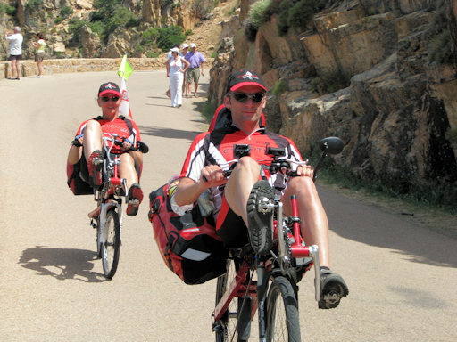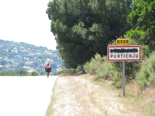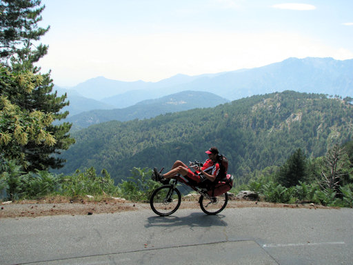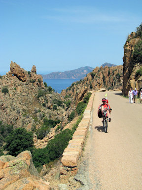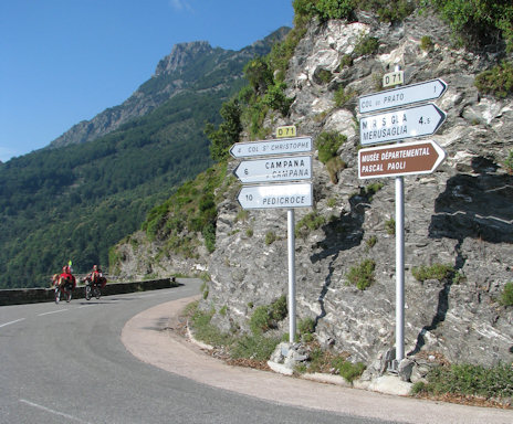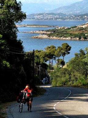Corsica. A very steep climb near Verghia forced us to walk the bicycles.