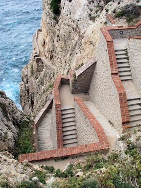 Sardinia. 654 steps leading to Grotta di Nettuno (Neptune's Grotto). As legend has it, only goats were capable of getting there, which is why the staircase is now called "goat's steps".