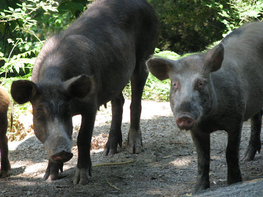 Corsica. A close encounter with wild pigs - around 15 thousand of those animals live in Corsica.