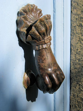 Corsica. Door-knocker at a hotel in Pigna.