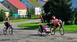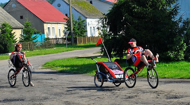 On September 10th-12th in Pila city was 3rd Polish Recumbent Bicycle Meeting. Over 30 recumbent riders had come including us with 4 month old Maria and Magdalena. On Saturday our daughters went with us into a trailer whole 80km trip Pila - Ujscie - Trzcianka - Pila.